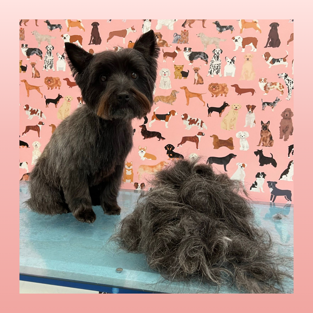 continue the groom, as this can cause more damage to your dog’s coat and skin,