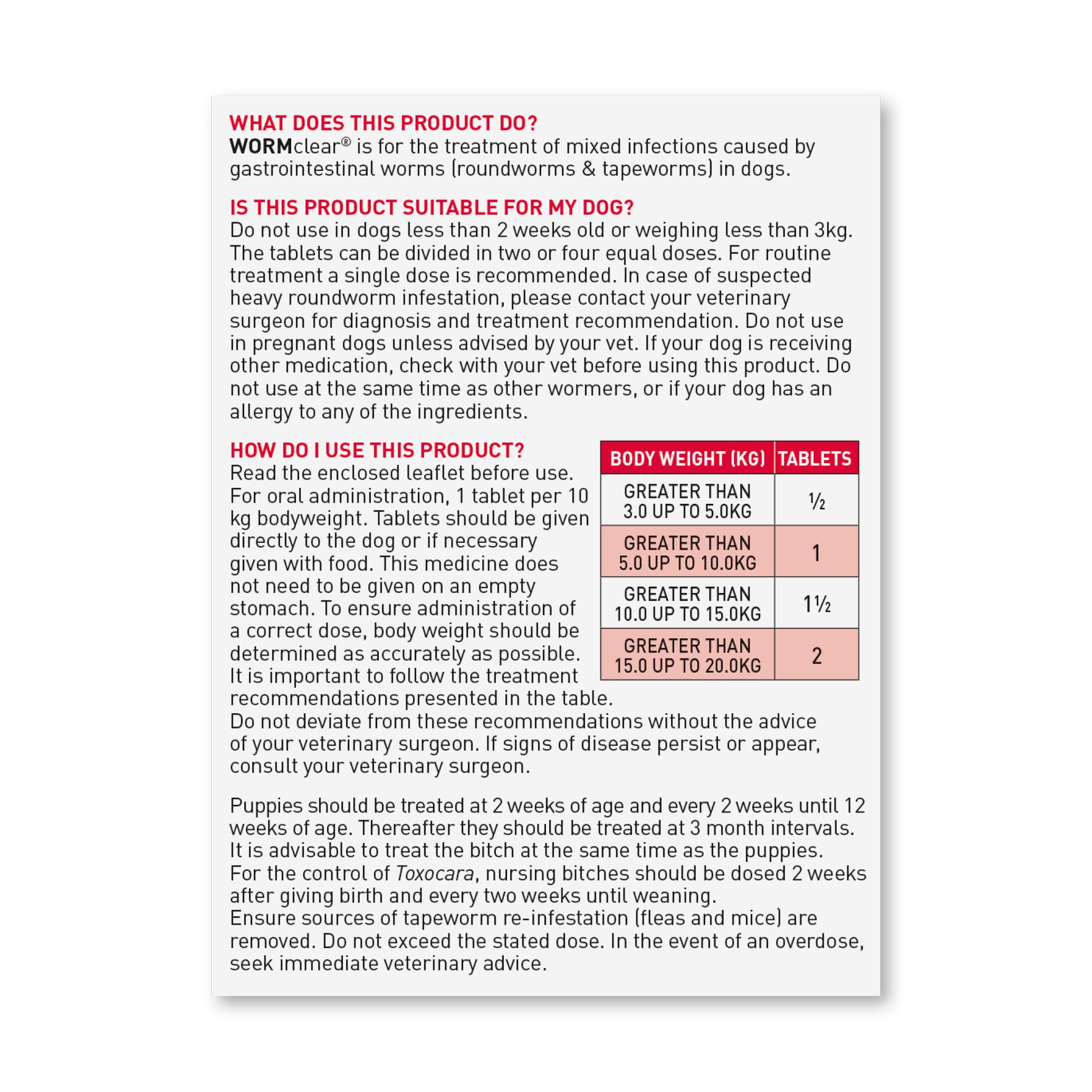 Use medicines responsibly. beaphar WORMclear® Tablets for Dogs contains pyrantel embonate, praziquantel and febantel.