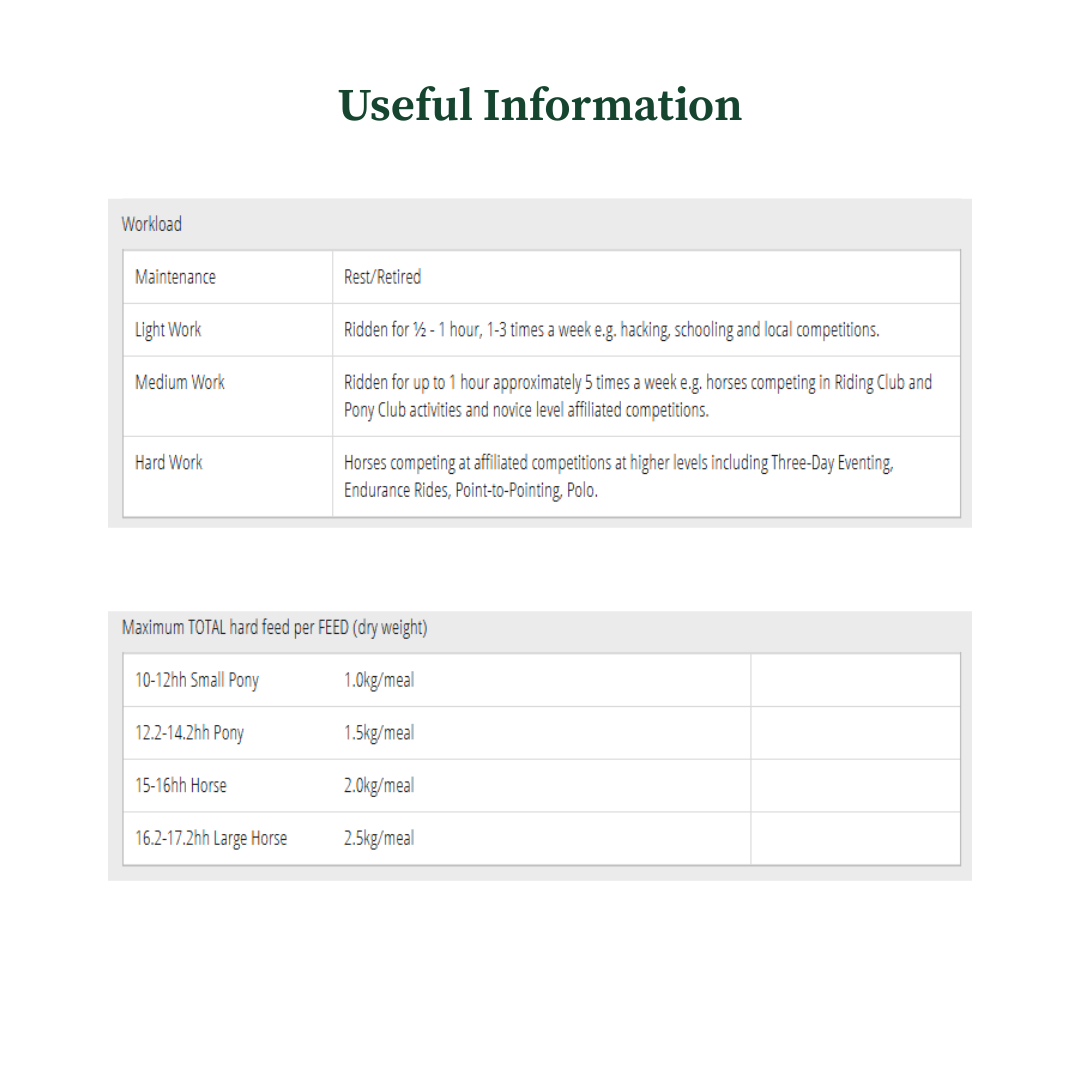 Typical Ingredients: High-Fibre Oat By-Product; Dried Beet Pulp; Wheatfeed; Soya (bean) meal (GM); Oats; Molasses; Full Fat Linseed Meal; Vitamin and Mineral Premix; Soya Oil; Yeast