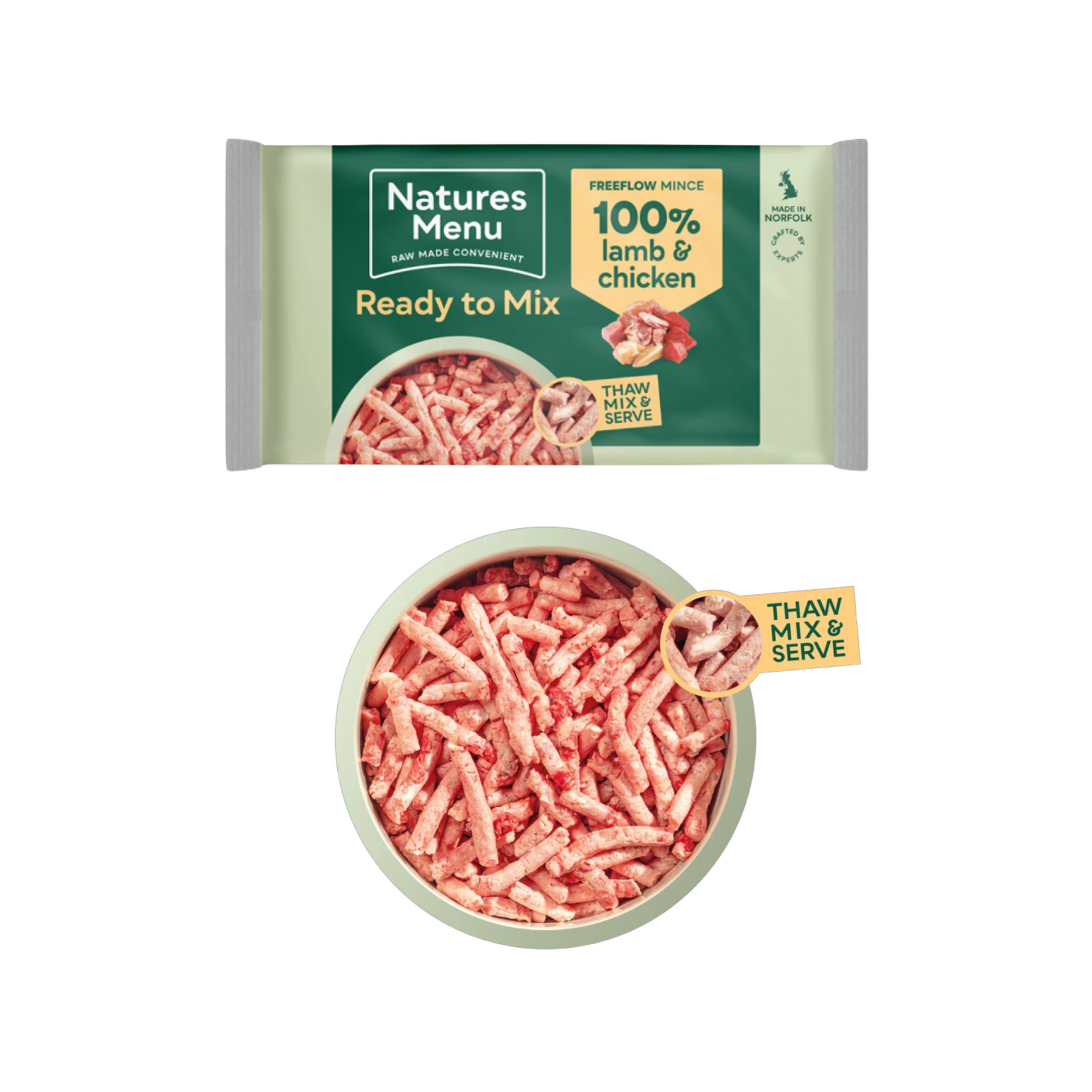 Free-flow raw mince for dogs is an ingredient, not a complete meal. We suggest that our 'Ready to Mix' products are prepared with fruit, vegetables and healthy carbohydrates, such as brown rice. We also recommend adding a good quality vitamin and mineral supplement.