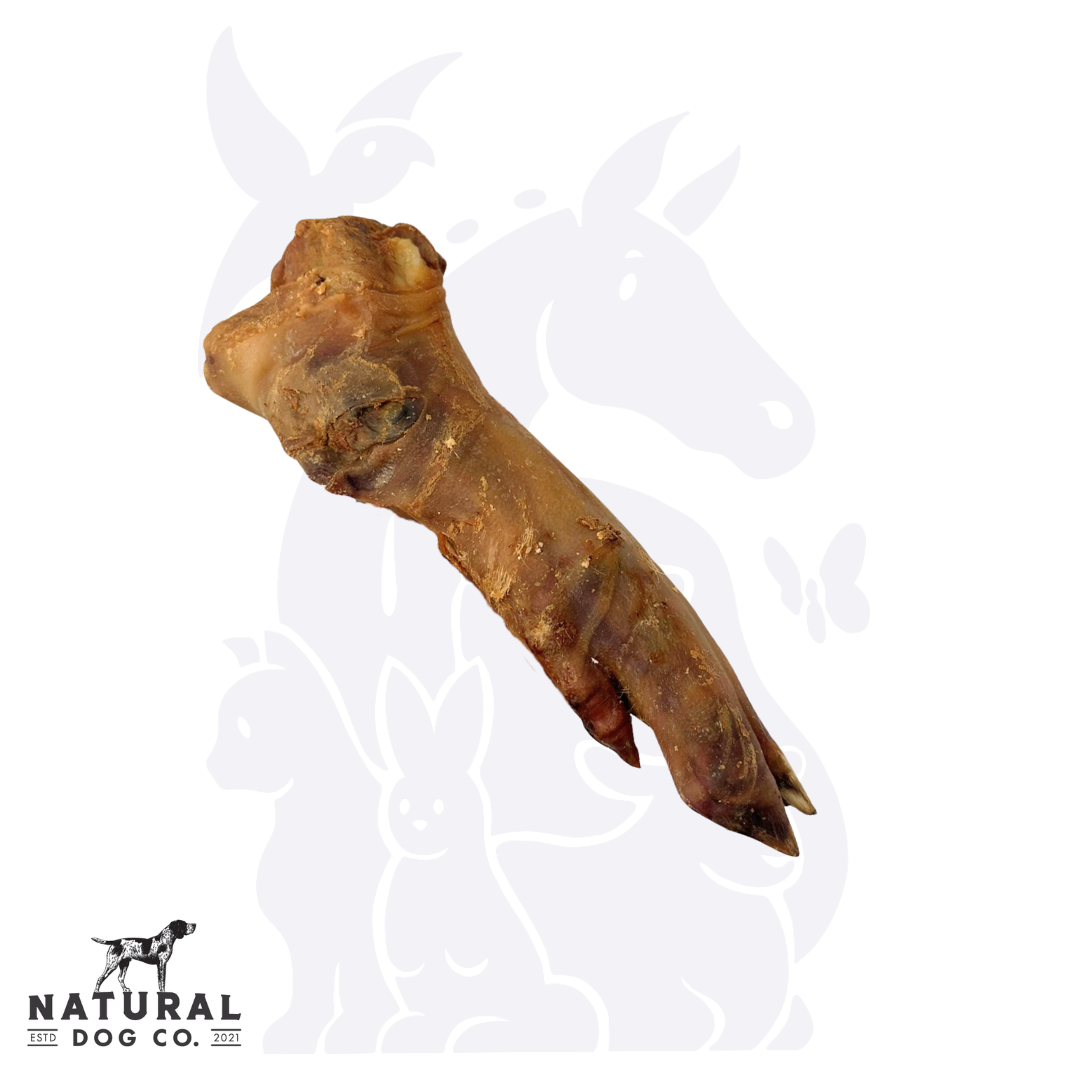 Our Large Pig Trotters are made from 100% Trotters. Simply Air-dried with No Additives, No Preservatives, Nothing! High in Protein, Low in Fat this Substantial, Long Lasting Treat is the perfect treat for those that like to chew.