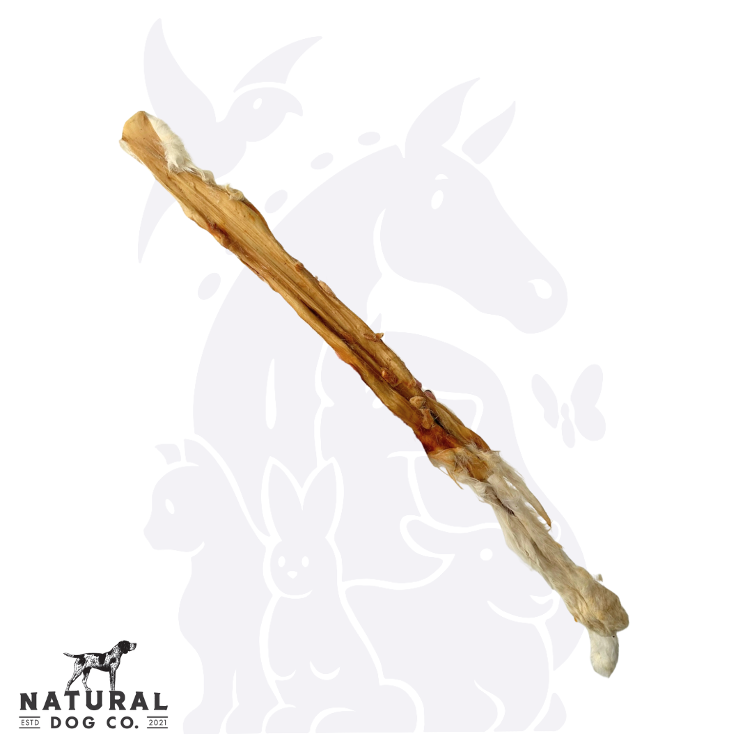 Rabbit Skin with Hair 65cm are made from 100% Rabbit Skin. Simply Air-dried with No Additives, No Preservatives, Nothing! High in Protein, Low in Odour and Hypoallergenic, these Tasty and Nutritious chews are a great alternative for Dogs who have allergies or sensitivities.